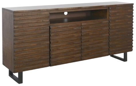 The Contempo Brown Media console offers functionality and style to your space. The media console’s sturdy construction is crafted from high-quality mahogany wood and metal making it a long-lasting durable option for your space. The functional design includes a cutout for wire management and fashionable doors for easy access to your media devices.Read More