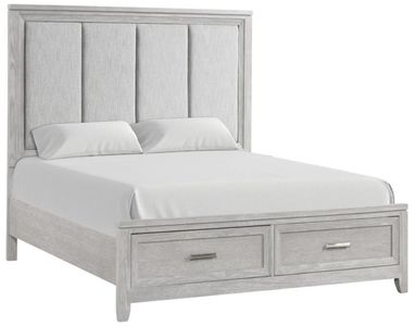 Elevate your space with the Fantasia dove bedroom collection. Features a beautiful gray wood finish, dove upholstery on the headboard. Every piece is complete with elegant silver hardware. The bed frame is available in queen or king sizes and feature two storage drawers for added function.Read More