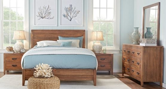 The American Wholesale Furniture Harbour 5-Piece Brown Queen Bedroom Set provides a complete solution for a cohesive and functional bedroom. Including a queen bed, dresser, mirror, nightstand, and chest, it offers ample storage and comfort. This set is designed to maximize space while delivering everyday convenience and long-lasting durability.Read More