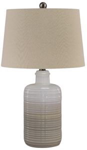 Wowing with shades of taupe and white, this table lamp lights up our world. The glazed, textural base encompasses casual-cool beauty beside any sofa or bed, what a well-rounded pair.Read More