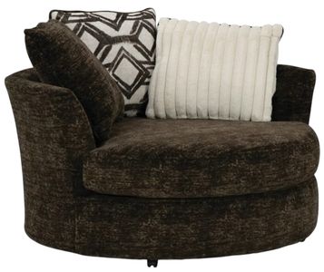 This swivel pot chair features cozy chocolate-colored upholstery and a rounded design for a modern, inviting look. The smooth swivel base adds functionality, making it easy to turn and engage in conversation. A great accent piece for lounging in living rooms or bedrooms.Read More