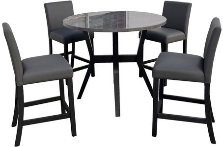 The Shannon Pub set stands out with its striking contemporary silhouette. The group features a faux marble top and wipeable seats making it ideal to maintain. The set comes with a table and four chairs, assembly is required.Read More
