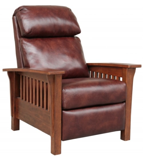 Characteristic of the arts and crafts period, this Mission 3 way low leg recliner offers classic craftsman styling and boast luxurious comfort with zippered semi attached back pillows, tight bullnose seat with pocketed coil springs encased in foam and wrapped in Dacron. Footrest extension for extra leg support.Read More