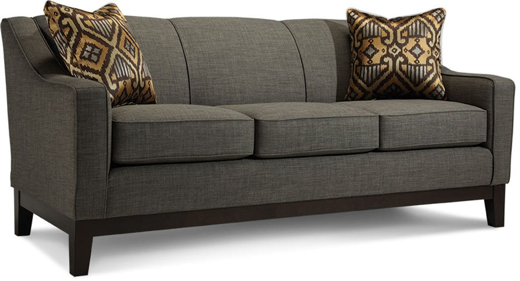 Give your space the boost it needs with the strong and silent Emeline custom seating sofa. The simple form of this sofa is given a sense of purpose through clean lines and a bold Espresso finish. To better match this stylish sofa with your room’s style and decor, choose from over 700 fabrics. Comfort runs from the fabric you choose to the core inside as the cushion features encased coil springs. Make this sofa truly your own, but customizing the arm style, skirt/leg option and your choice of fabric