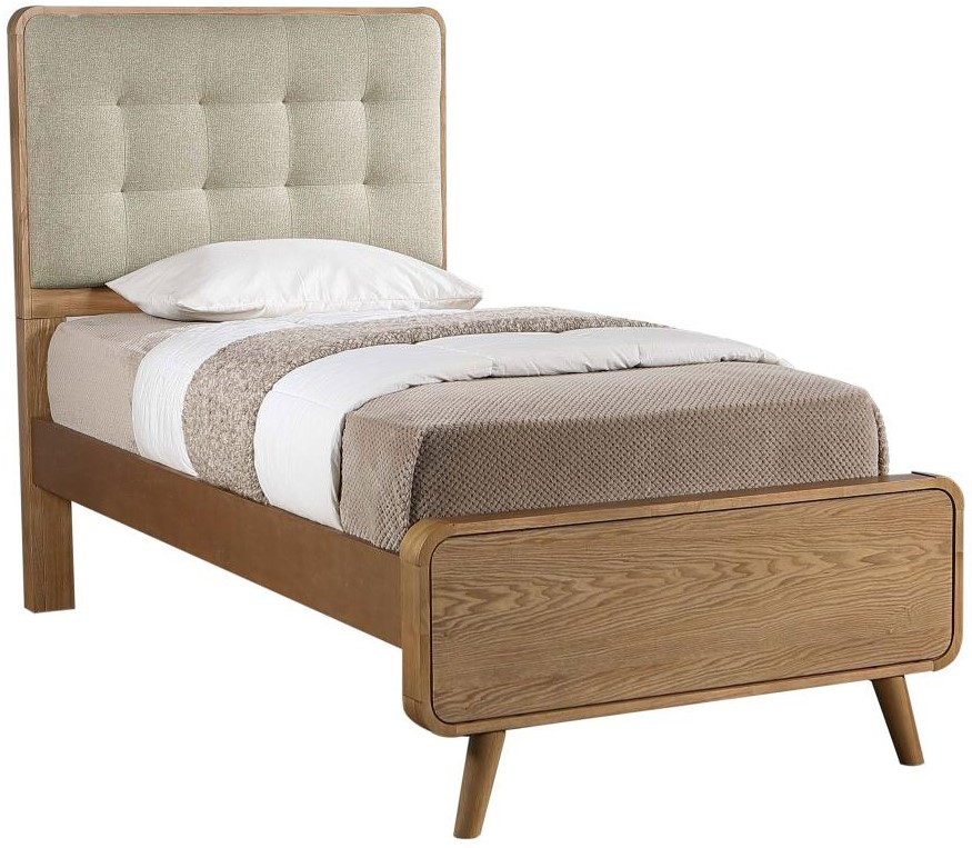 Mid-century modern twin bed in light ash finish with a sleek and elegant silhouette
