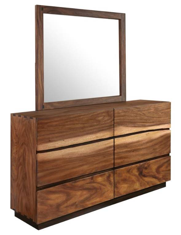 The Coaster® Winslow Smoked Walnut Dresser and Mirror showcase a rich smoked walnut finish with clean, modern lines. This set offers ample storage and a stylish mirror, perfect for adding warmth and sophistication to any bedroom. Durable and timeless design.Read More