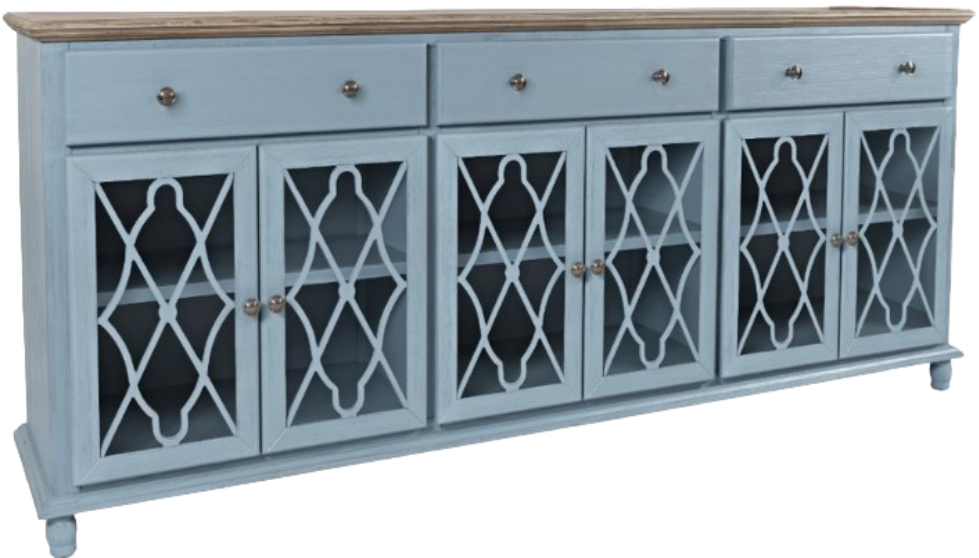 These versatile cabinets will be a stylish focal point anywhere in your home. Glass inlay doors with elegant fretwork and three alluring two toned finishes, all available in three sizes, choosing your favorite will be your hardest decision.Read More