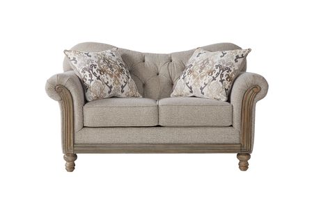 This elegant love seat features a timeless tufted back. rolled arms, and turned legs for a classic look that compliments any space. It combines traditional charm with everyday comfort.Read More